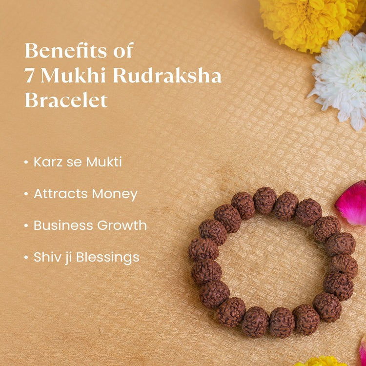 1. The 7 Mukhi Rudraksha Bracelet balances the root and crown chakras, promoting stability and spiritual connection.